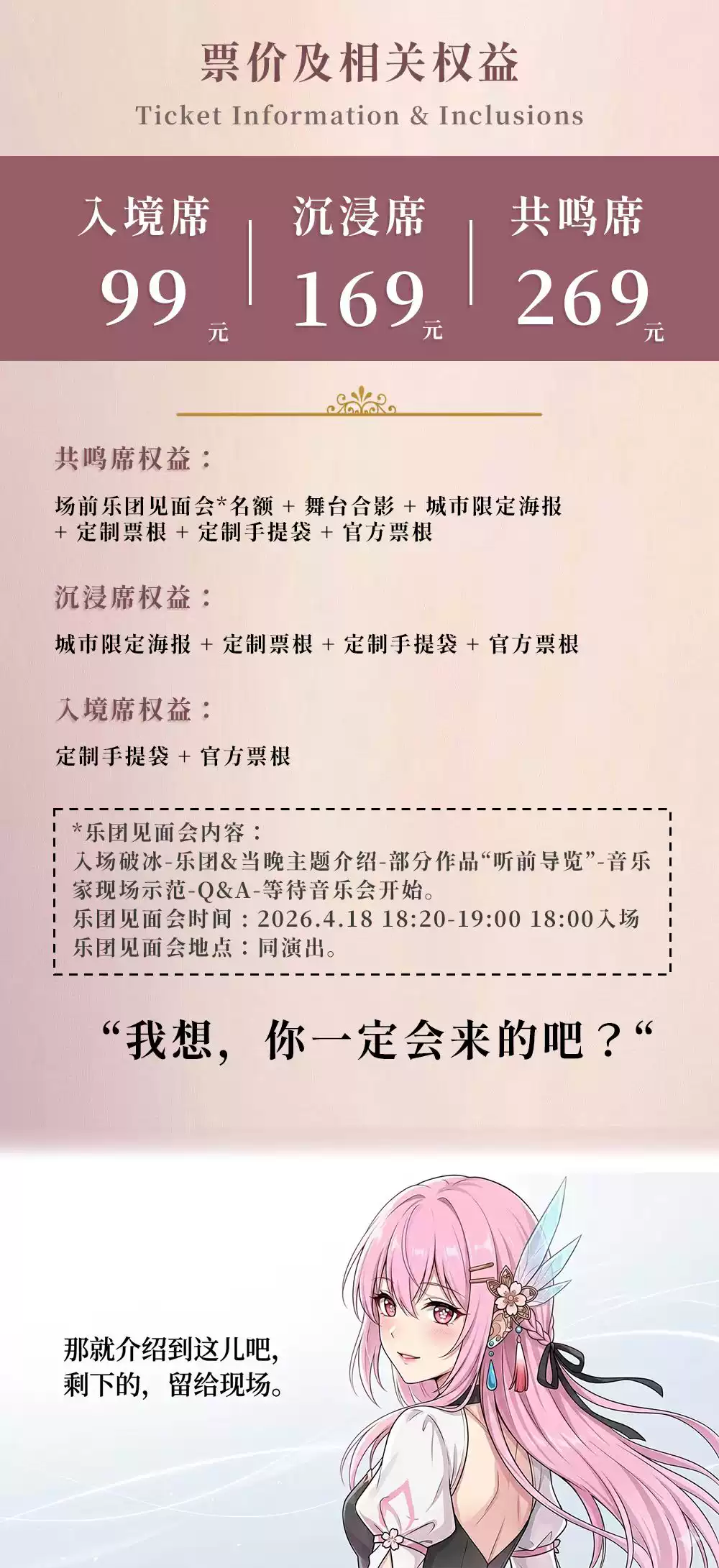 | 演出时间 | 2026-04-18 星期六 19:30 | 演出场馆 | 五棵松·爱乐汇艺术空间·都市音乐厅 |