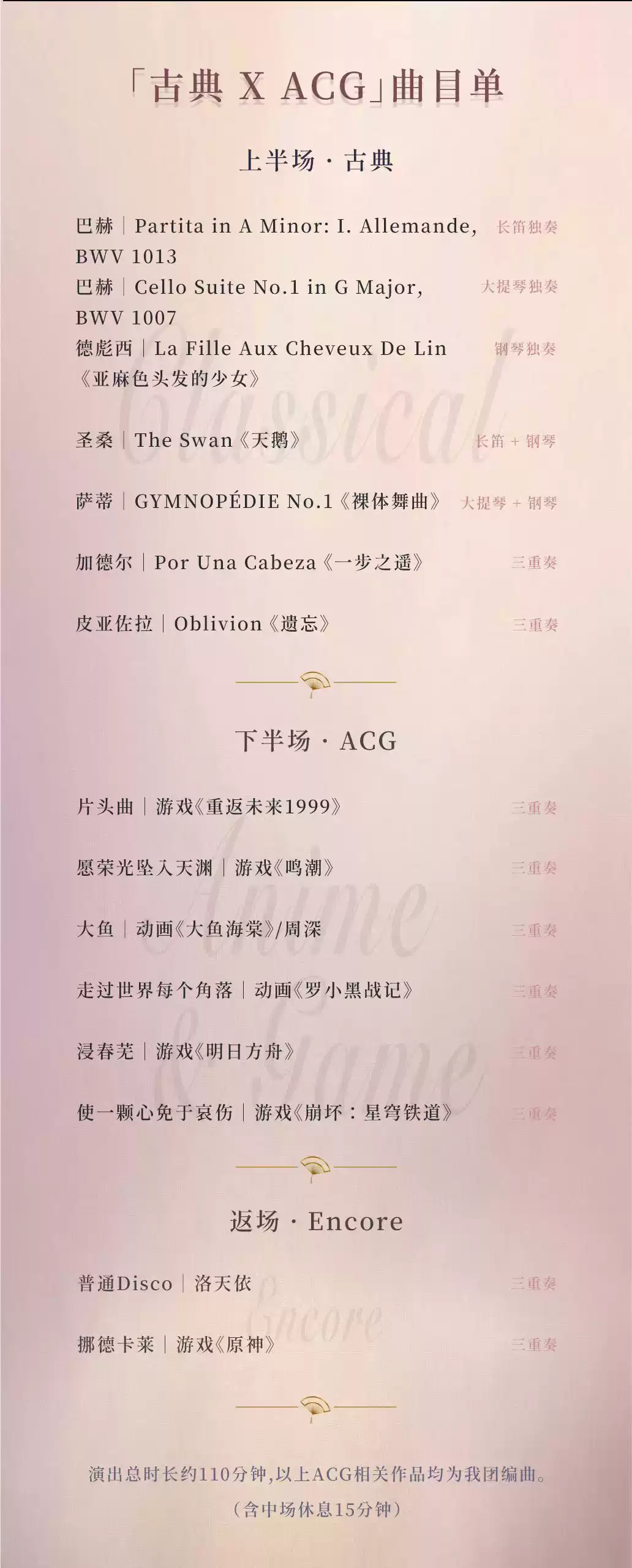 【迟到或中途离场的观众需等待曲间入场】