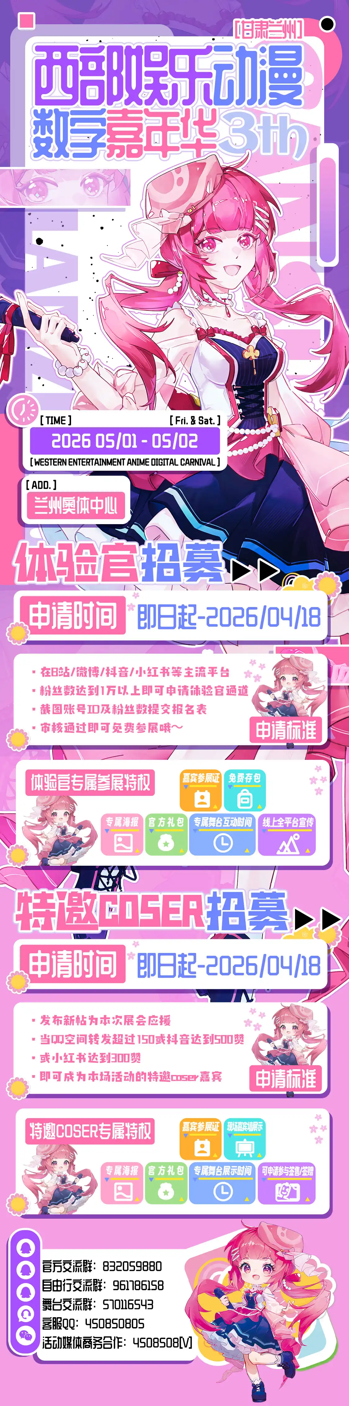 兰州·西部娱乐动漫数字嘉年华3th即将在2026年5月1-2日在兰州奥体中心举行!