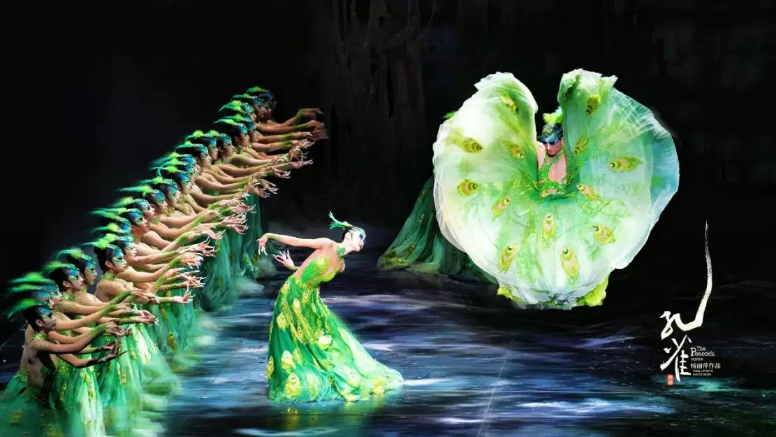 舞剧《孔雀》中还有无数的精彩亮点,例如曾经登上春晚舞台的孔雀爱情双人舞《雀之恋》、自始至终不停旋转的“时间”......这些点点滴滴,就好像孔雀开屏时,那灿若星辰眼睛一样的翎羽一般,等待着你的到来,和我们一起,进入这场关于“孔雀”的奇幻之旅。