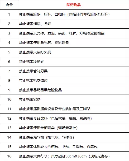 由于安保和版权的原因,大多数演出、展览及比赛场所禁止携带食品、饮料、专业摄录设备、打火机等物品,请您注意现场工作人员和广播的提示,予以配合。
