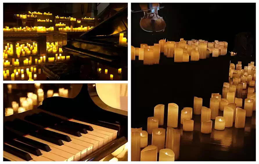 烛火摇曳,灯光围绕。当经典乐曲与烛光结合,给观众带来视觉、听觉、感觉相结合的独特之感。当黑暗笼罩,唯有烛光闪烁,美妙的音符从指间跃动。我们置身于烛光的海洋,满满的温馨与浪漫。悠扬的音乐传递希望与美好,烛光的温暖点亮所有角落,是真正美轮美奂的音乐会体验。