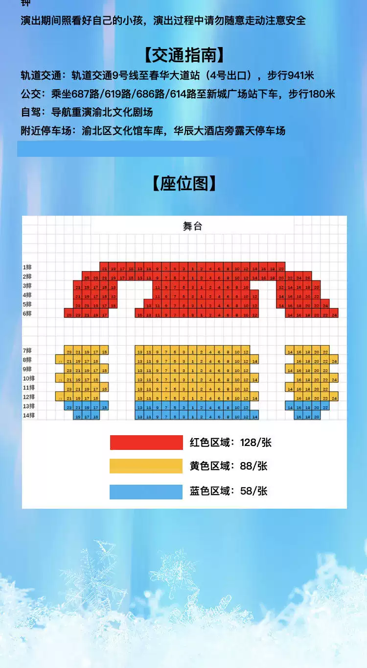 4.入场后,请严格按照票面指定区域和座位对号入座,请勿在演出期间换座,文明观演。