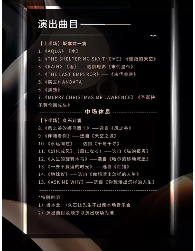 4.入场后,请严格按照票面指定区域和座位对号入座,请勿在演出期间换座,文明观演。