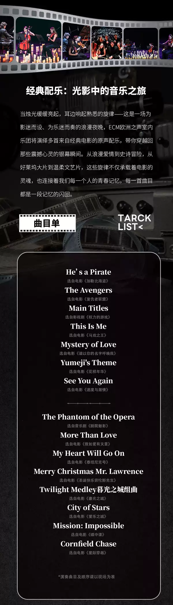 4.入场后,请严格按照票面指定区域和座位对号入座,请勿在演出期间换座,文明观演。