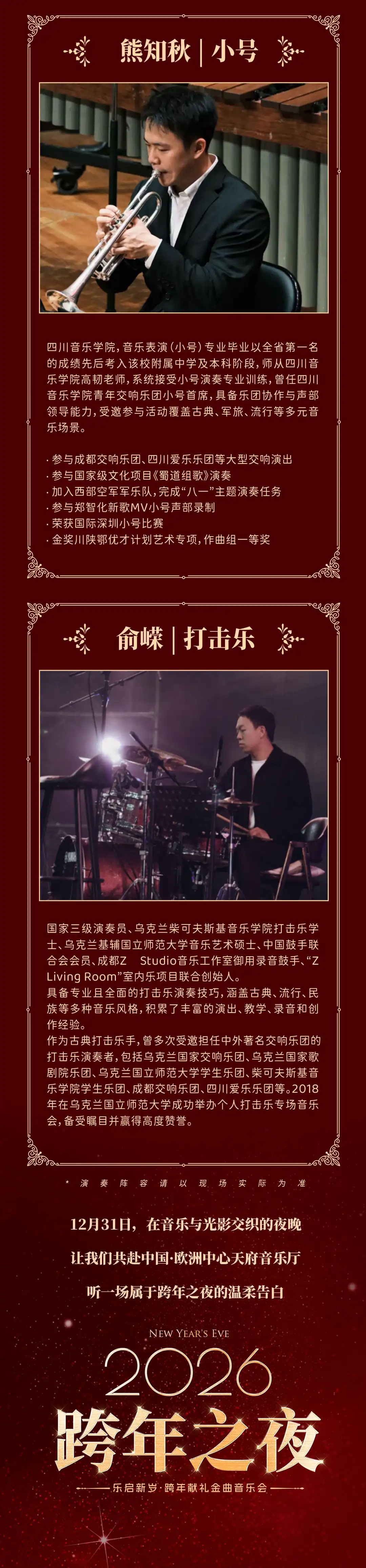 | 演出时间 | 2025-12-31 星期三 19:30 | 演出场馆 | 中国-欧洲中心天府音乐厅 |
