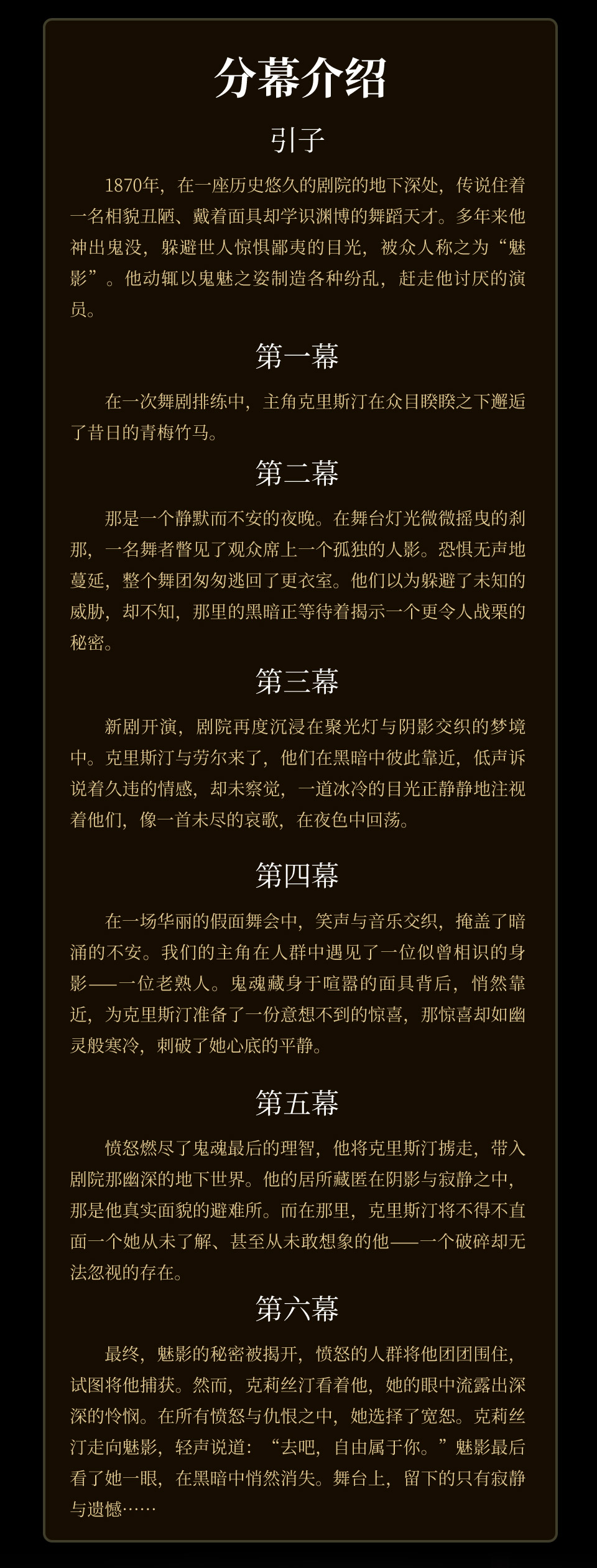 | 演出时长 | 以现场为准 | 儿童入场提示 | 儿童一律凭成人票入场 |