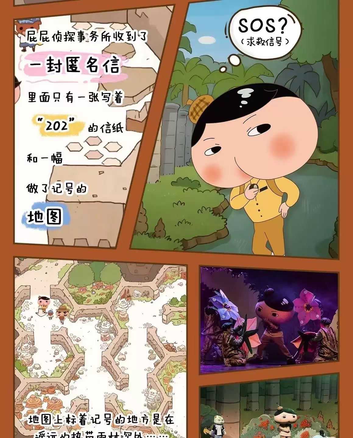 屁屁侦探事务所收到了一封匿名信,里面只有一张写着“202”的信纸和一幅做了记号的地图。屁屁侦探看出那其实是故意写成镜像文字的“SOS”(求救信号),地图上标着记号的地方是在遥远的热带雨林深处……