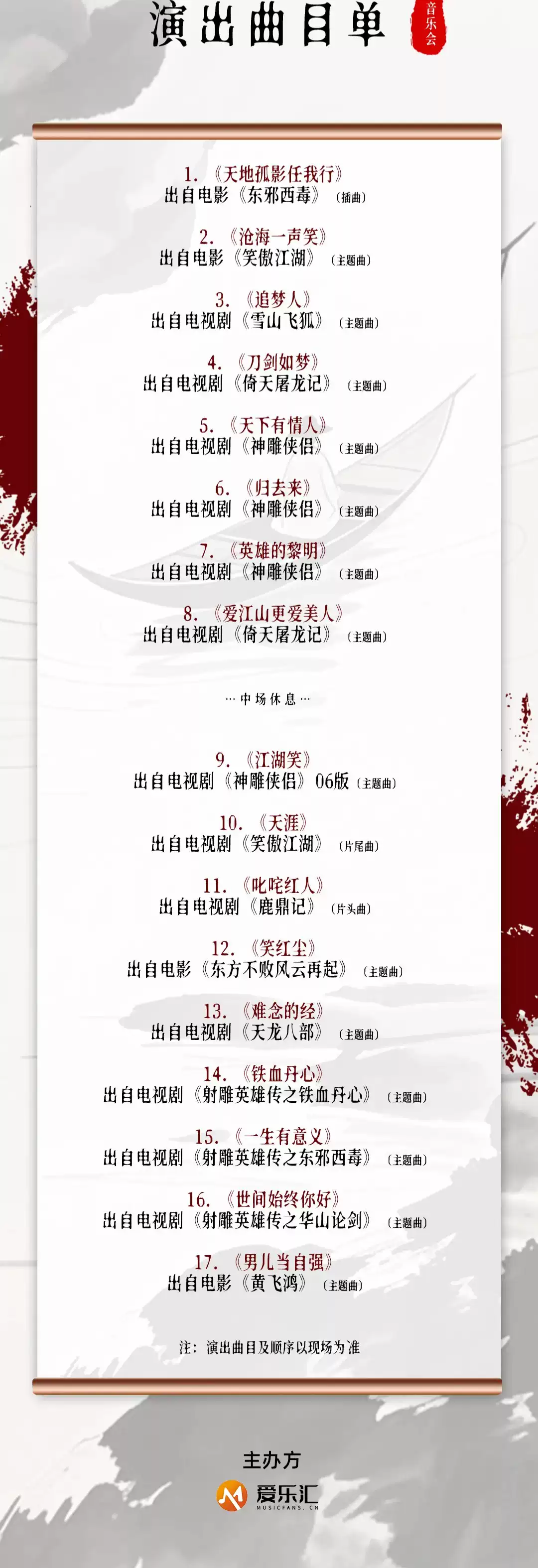 *迟到或中途离场的观众,仅可在中场休息或曲目间入场。具体以现场为准。