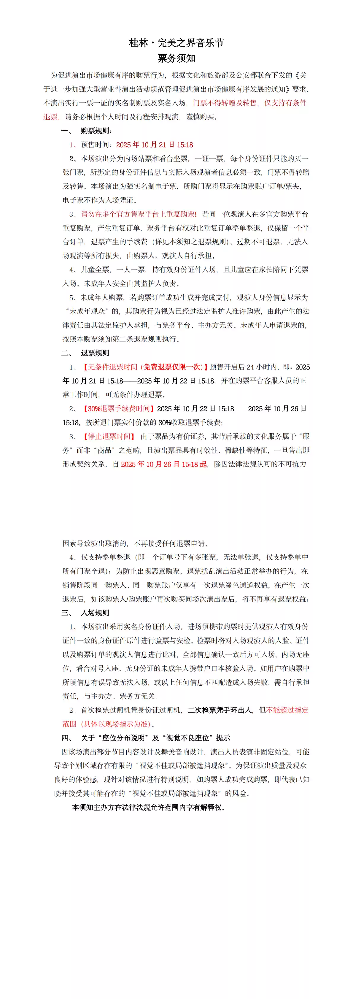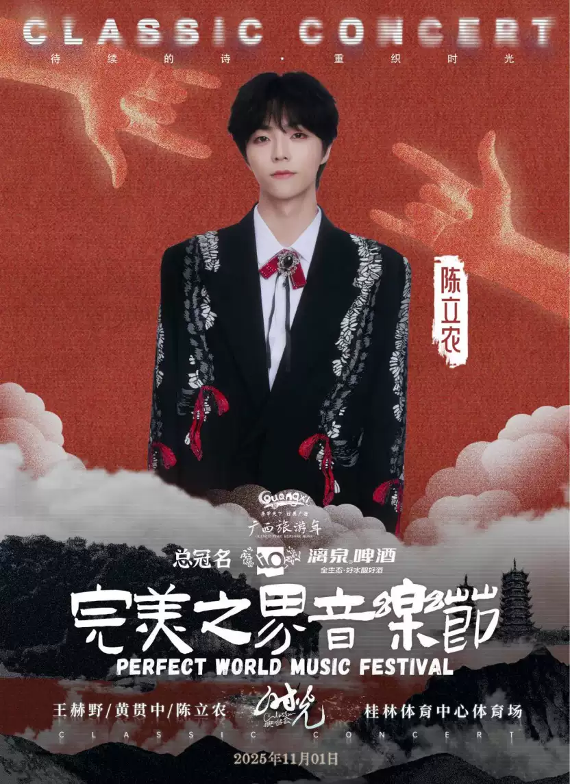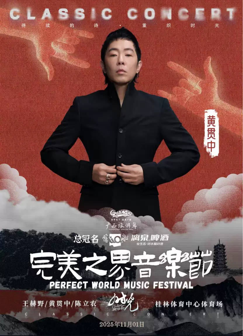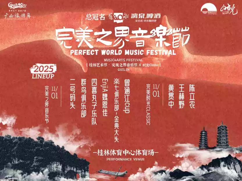 一次性领略两种截然不同的音乐现场!“桂林·完美之界音乐节”汇聚多元新声;夜晚“完美时光Classic”重温时代金曲,释放青春活力。本次音乐节选址桂林体育中心体育场,将舞台置于山水之间,让音符与自然共鸣,打造一场“听得见的风景”。