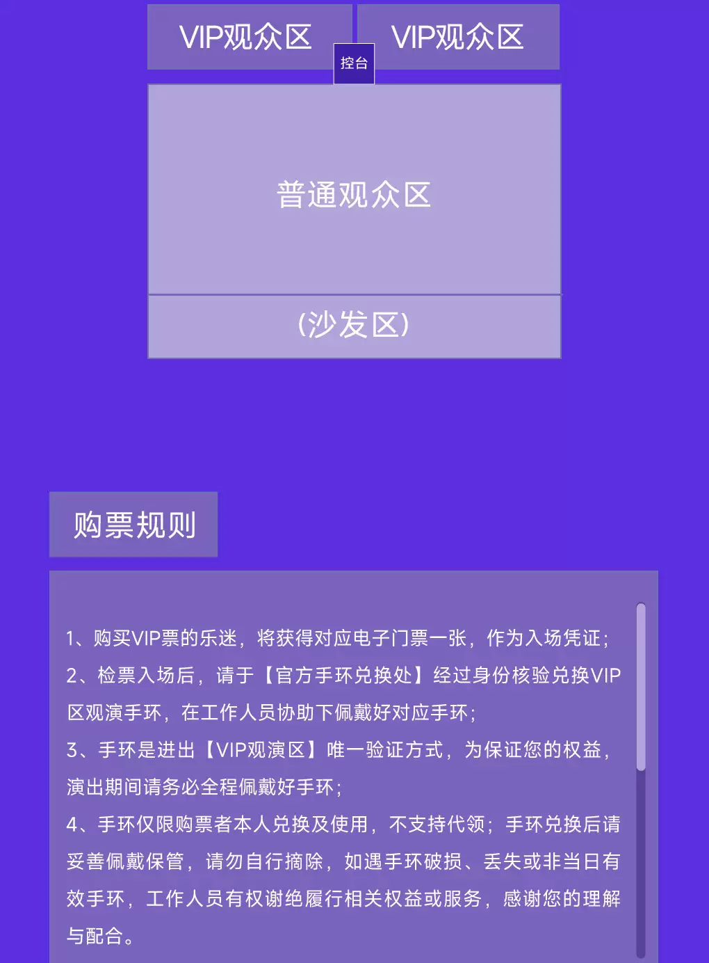 4.入场后,请严格按照票面指定区域和座位对号入座,请勿在演出期间换座,文明观演。