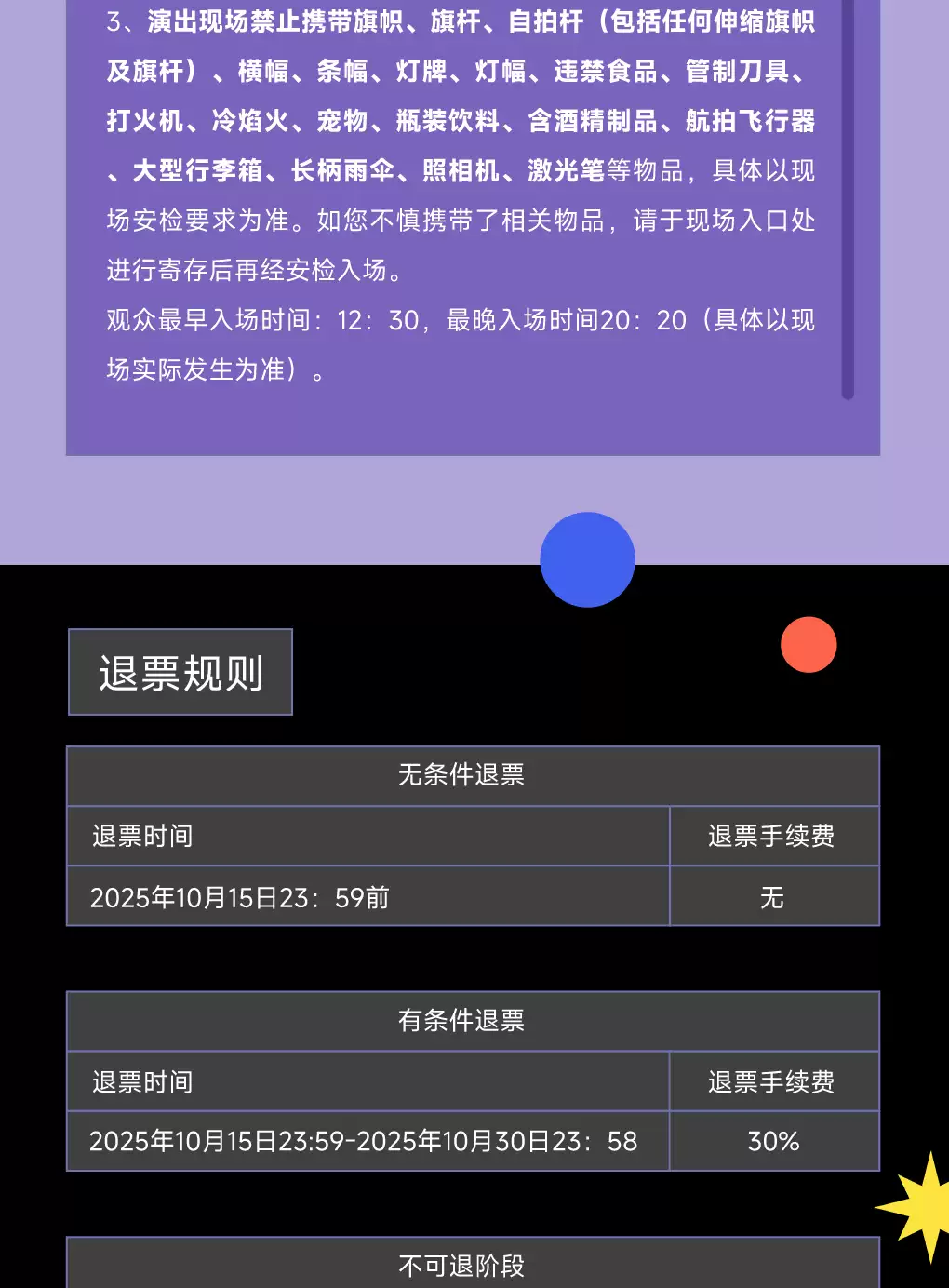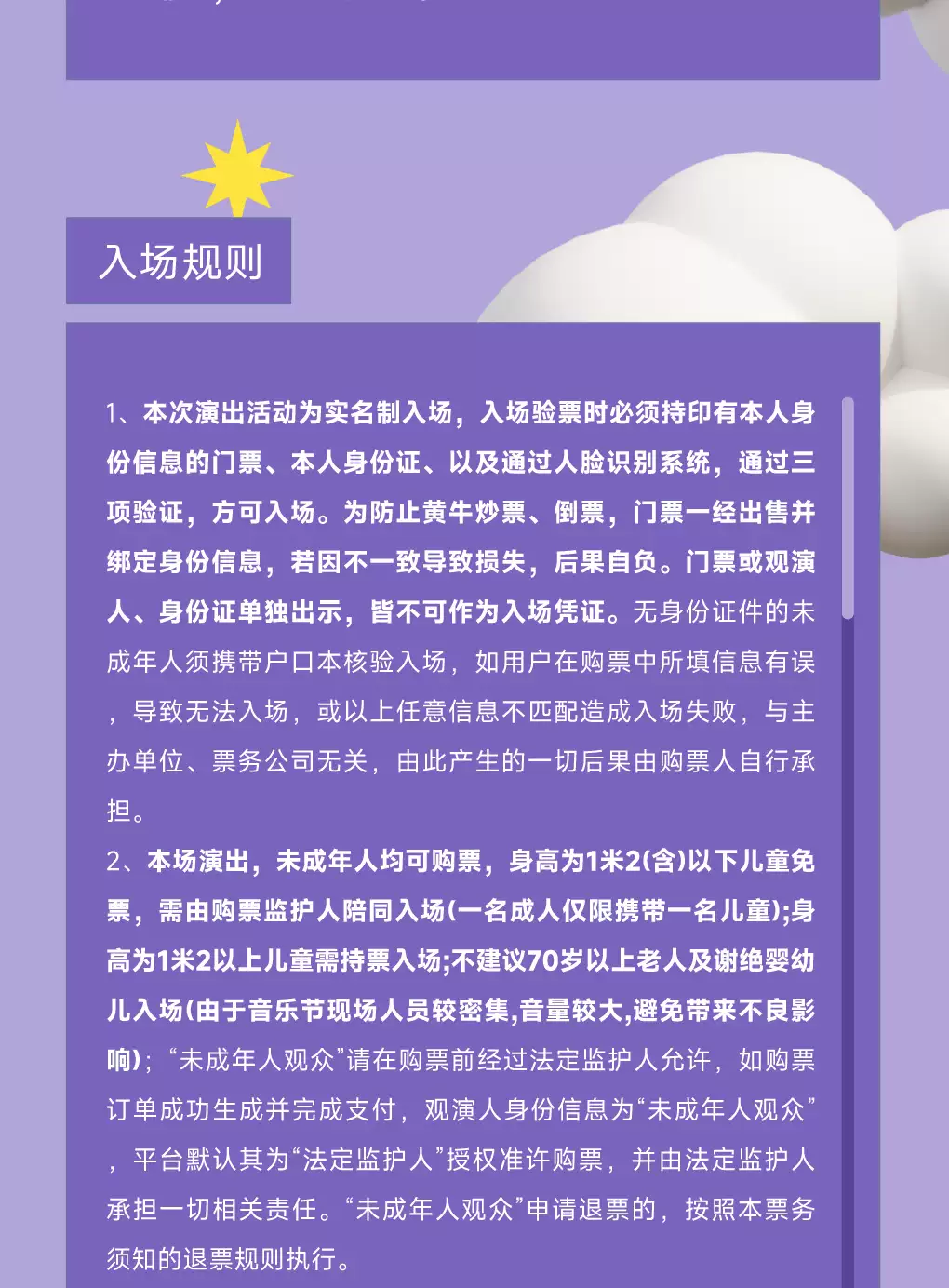 1.购买前请您提前规划好行程,做好相应准备,以免影响您的正常观演,感谢您的理解和配合。