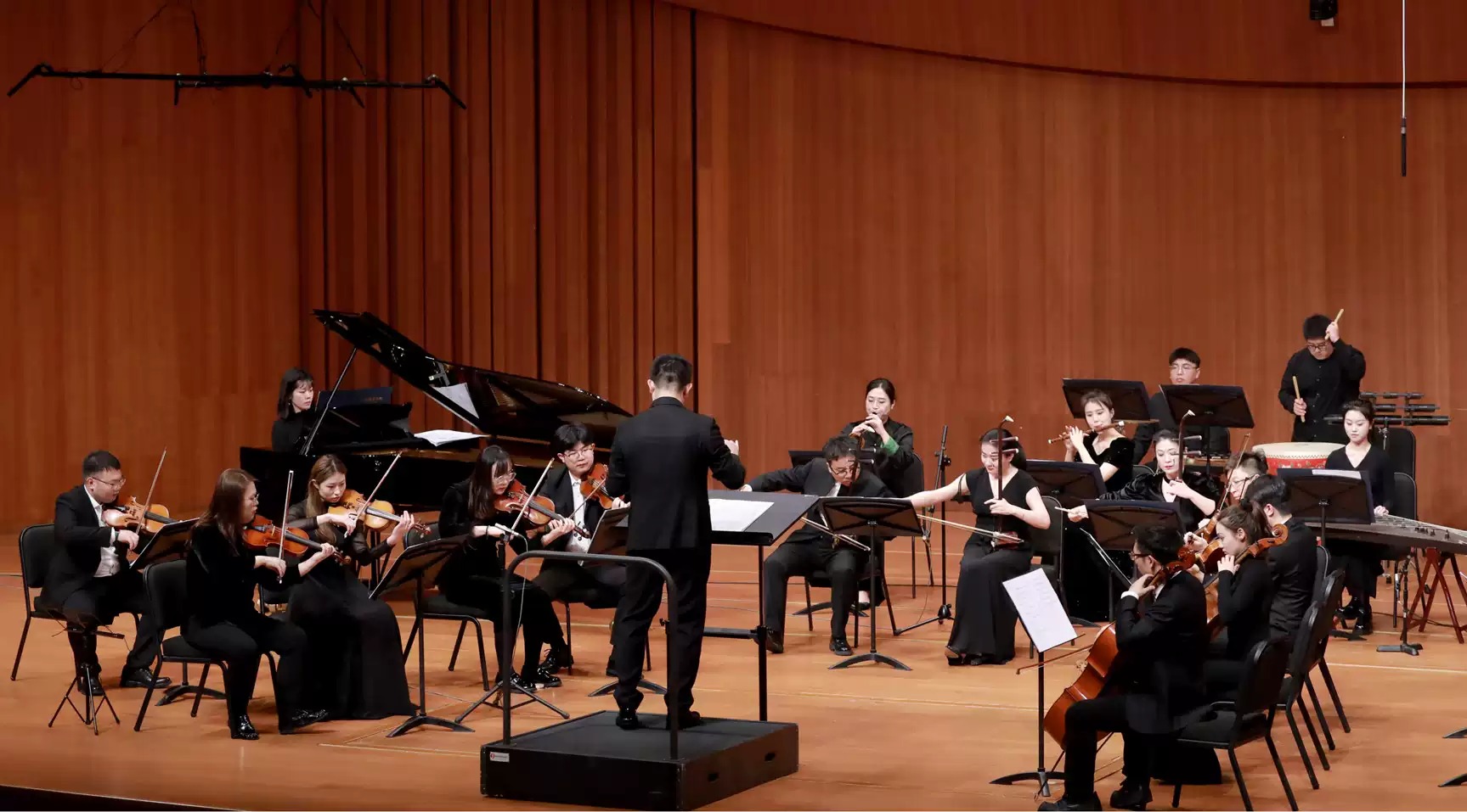 民族武侠交响音乐会的恢弘现场,丝竹管弦与金戈铁马交织,传统民乐与西洋乐器结合,以其独有的音色与意境,勾勒出一幅荡气回肠的江湖长卷——整场音乐会,民乐、西乐不再只是乐器,而是江湖的化身、英雄的心声、山河的呼吸。在丝竹管弦的交响中,我们听见的不仅是音乐,更是千年武侠精神的回响——纵使岁月流转,侠义不灭;纵使英雄老去,琴音永存。