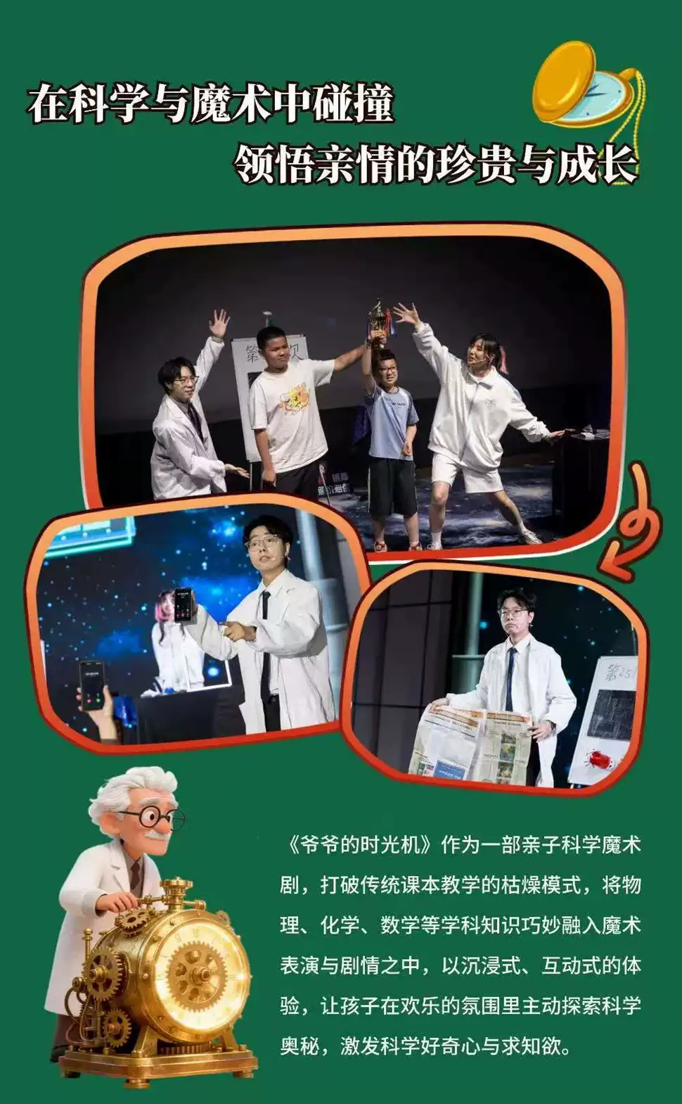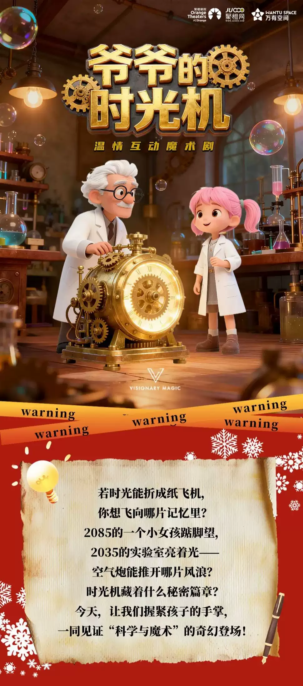 2026年3月8日,魔术剧《爷爷的时光机》深圳站与你相约湾剧场·万有空间 WantU Space,握紧孩子的手掌,一同见证“科学与魔术”的奇幻时刻!
