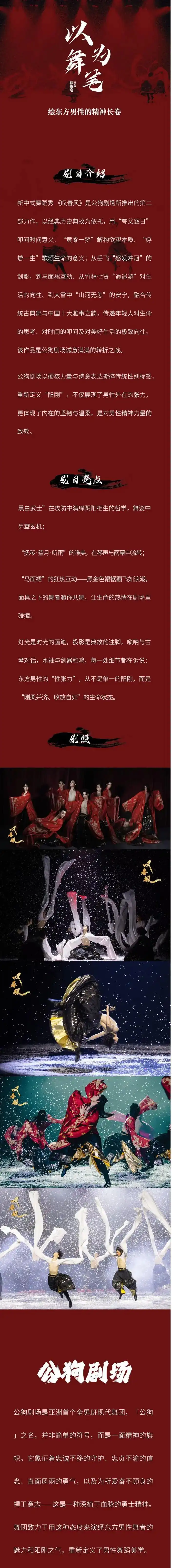 新中式舞蹈秀《叹春风》是公狗剧场所推出的第二部力作,以经典历史典故为依托,用"夸父逐日”叩问时间意义,”黄梁一梦”解构欲望本质,“蜉蝣一生”歌颂生命的意义:从岳飞”怒发冲冠”的剑影,到马面裙互动、从竹林七贤"逍遥游”对生活的向往、到大雪中"山河无恙"的安宁,融合传统古典舞与中国十大雅事之韵,传递年轻人对生命的思考,对时间的叩问及对美好生活的极致向往。该作品是公狗剧场诚意满满的转折之战。公狗剧场以硬核力量与诗意表达撕碎传统性别标签,重新定义”阳刚”,不仅展现了男性外在的张力,更体现了内在的坚韧与温柔,是对男性精神力量的致敬。