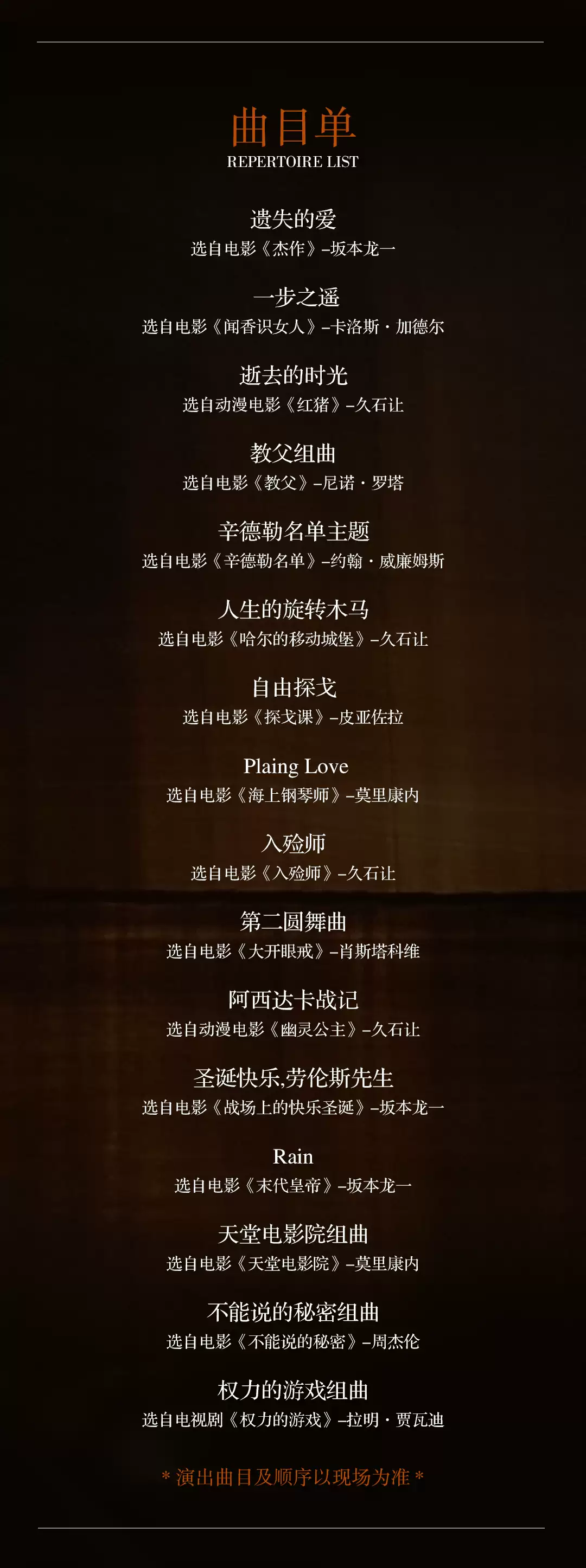 | 演出时长 | 以现场为准 | 儿童入场提示 | 儿童一律凭成人票入场 |