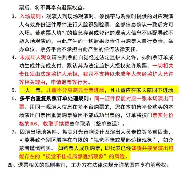1.购买前请您提前规划好行程,做好相应准备,以免影响您的正常观演,感谢您的理解和配合。
