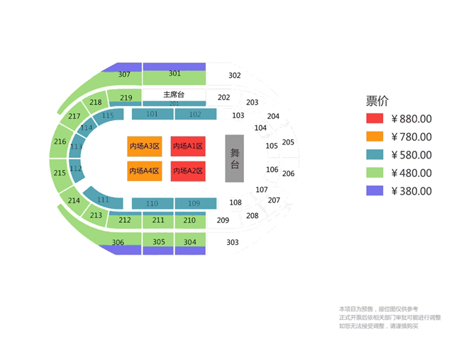 4.入场后,请严格按照票面指定区域和座位对号入座,请勿在演出期间换座,文明观演。
