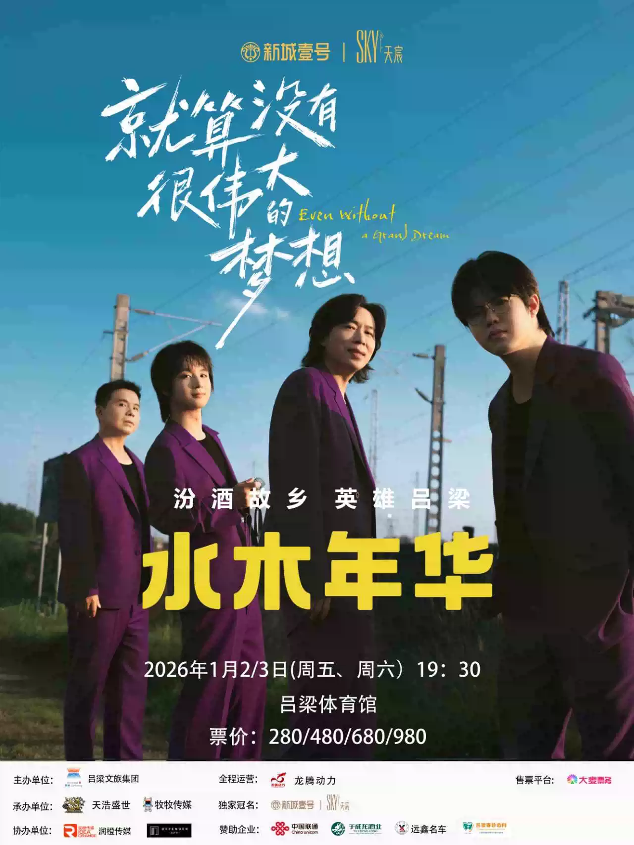 2026年1月2日至3日,吕梁体育馆,水木年华「就算没有很伟大的梦想」巡回演唱会,青春不散场,经典再回首!