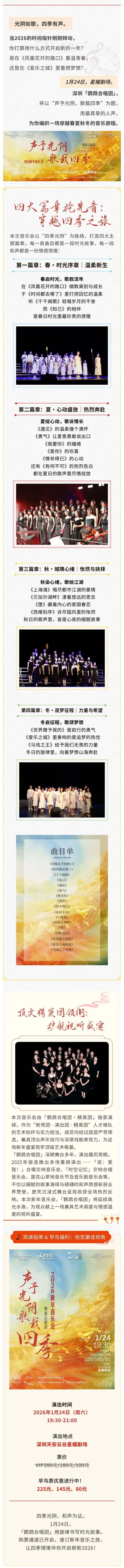 2026年1月24日,深圳市天安云谷星耀剧场,《声予光阴 歌载四季》深圳鹦鹉合唱团新年音乐会用最真挚的人声,为你编织一场穿越春夏秋冬的音乐旅程!