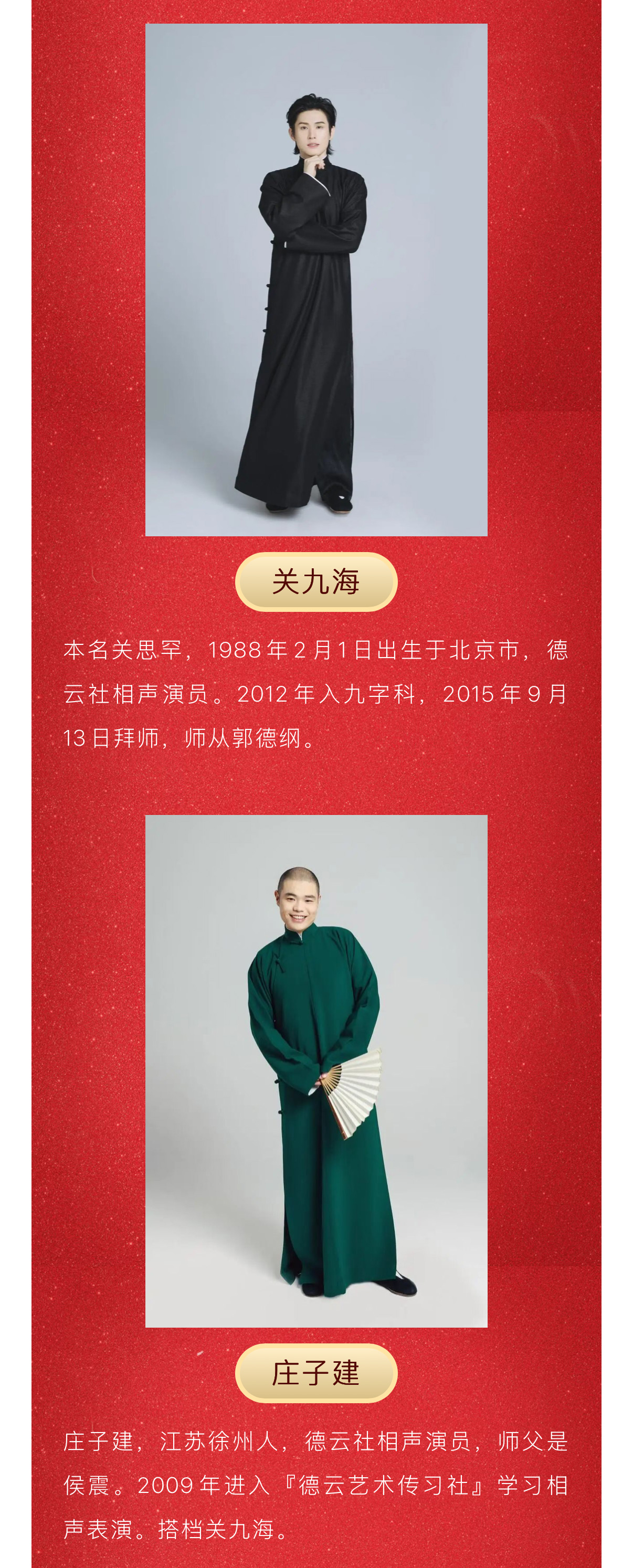 这个春节不只是听相声,更是见证当下喜剧界现象级天团的现场魅力!原汁原味的传统功底,爆梗频出的现挂互动,每一秒都是值回票价的快乐高光。把相声园子的热乎气儿直接端到你面前!