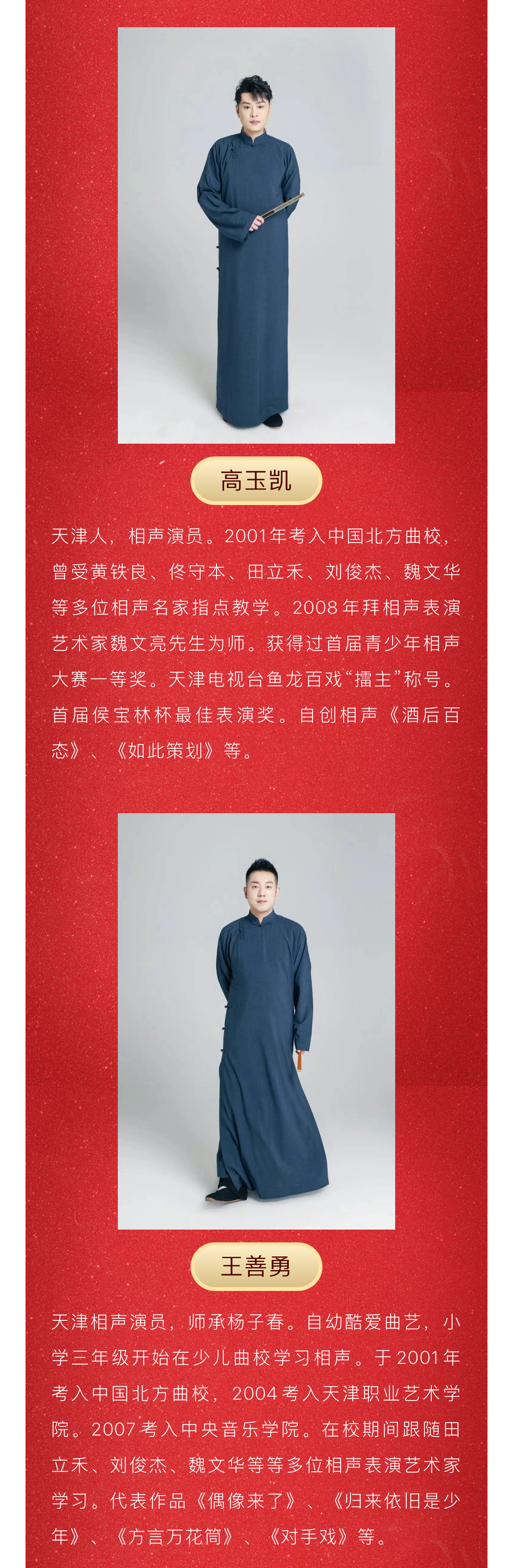 这里有传统功底深厚的沉稳台风,有自成一派的鲜活演绎,更有新生代的灵动与张力,无论是妙语连珠的逗趣,还是默契十足的捧逗搭配,每一段相声都是匠心打磨的快乐精品!