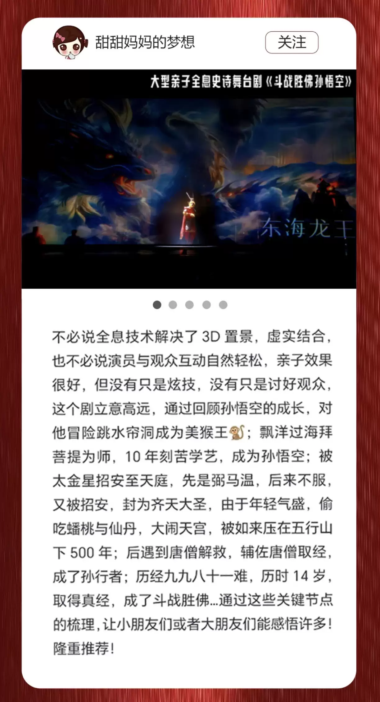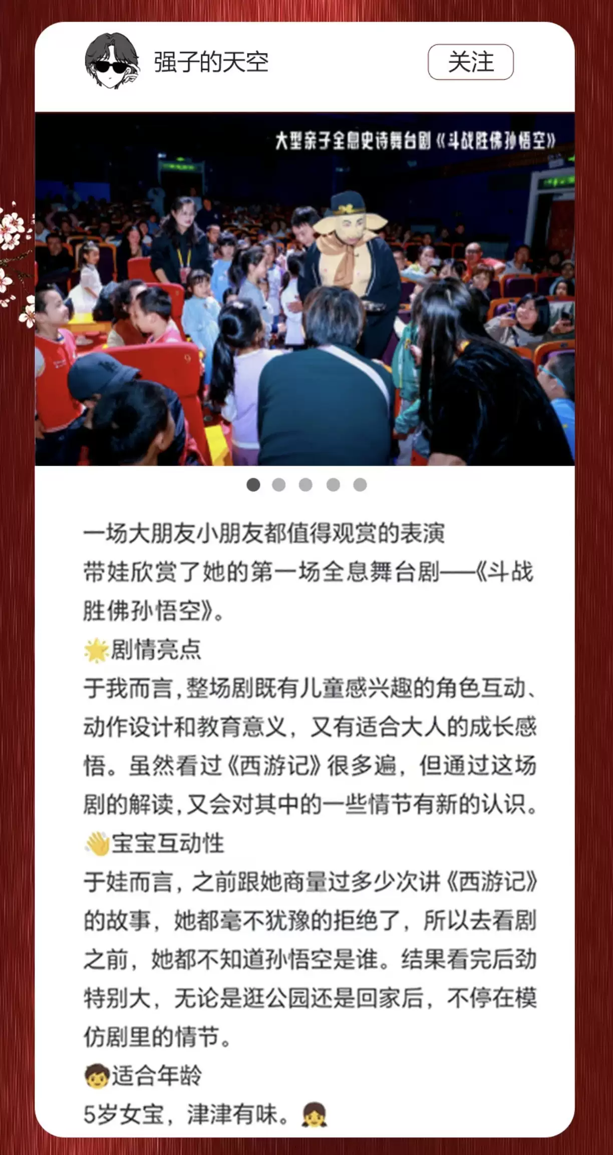 剧目不仅重现《西游记》的经典篇章,更着重展现孙悟空从桀骜不驯到肩负使命、最终修成正果的心路历程。故事内核积极向上,充满勇气、智慧与成长的启迪,是送给孩子一份关于责任与信念的珍贵礼物。