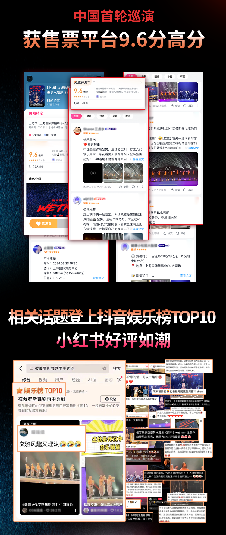 高颜值全型男卡司阵容集结俄区各舞种TOP级舞者堪称“俄区舞林天花板”,2025中国巡演走遍40余座城市,连续引爆社交网络相关线上话题热度超1亿,收获售票平台9.6分高分好评,堪称悦己愿望清单必打卡Live Show之一!