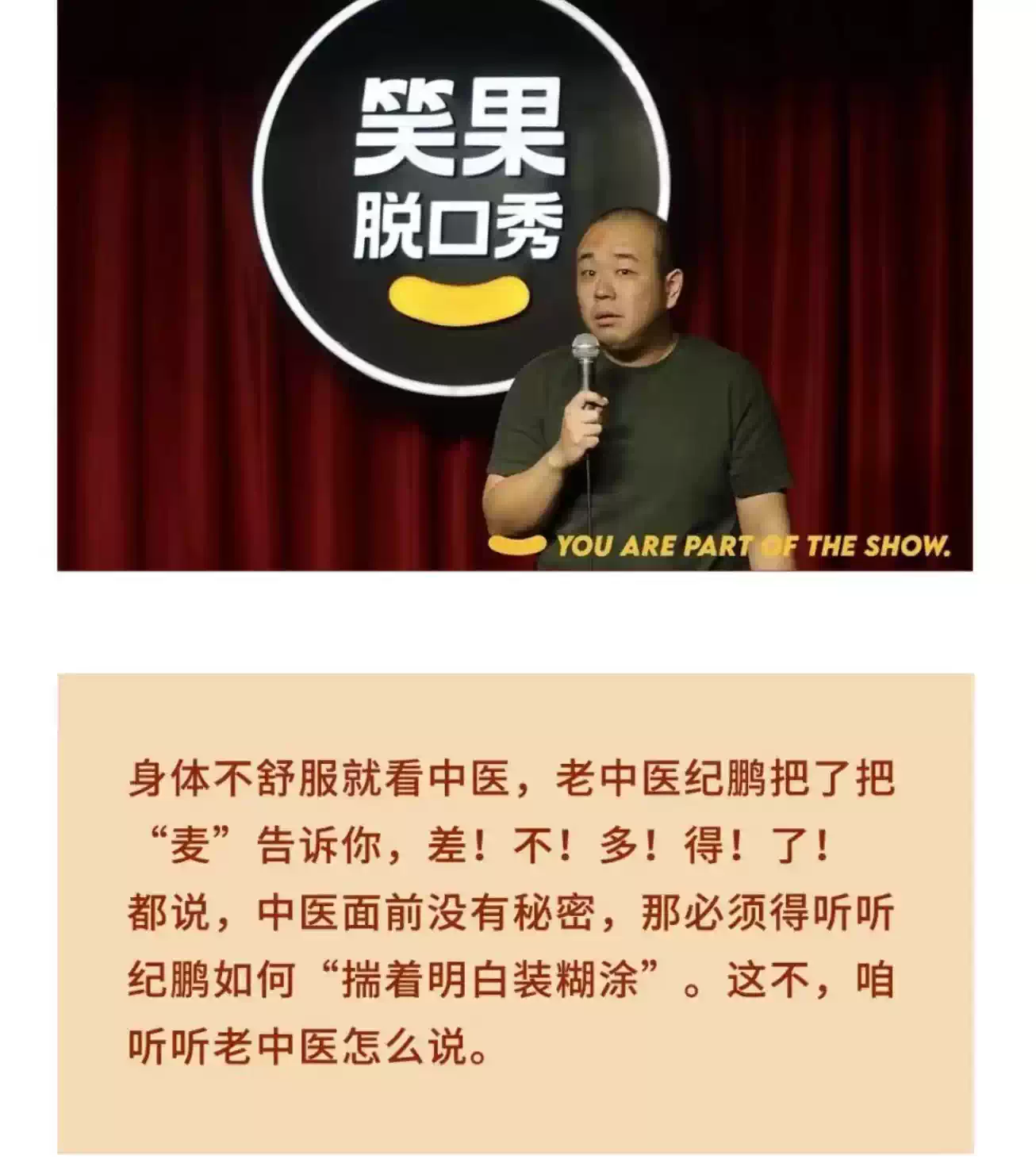 身体不舒服就看中医,老中医纪鹏把了把“麦”告诉你,差!不!多!得!了!都说,中医面前没有秘密,那必须得听听纪鹏如何“揣着明白装糊涂”。这不,咱听听老中医怎么说。
