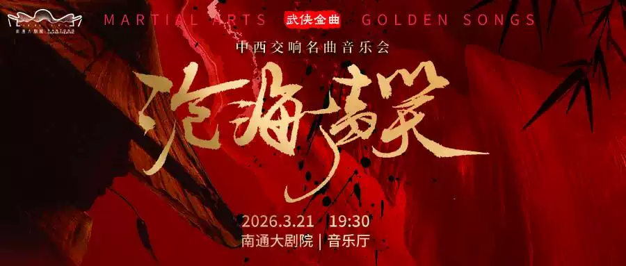 2026年3月21日,南通大剧院音乐厅,《沧海一声笑》武侠金曲中西交响名曲音乐会以恢弘交响交织动人人声,唤醒几代人深埋心底的青春记忆与武侠情怀!
