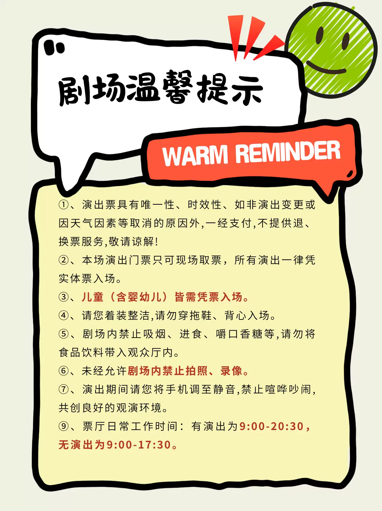 | 演出时长 | 以现场为准 | 儿童入场提示 | 儿童一律凭成人票入场 |
