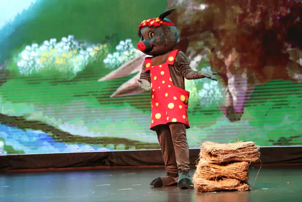 虽然《三只小猪》的故事结构非常简单,但内容却十分丰富:有大森林里小伙伴们之间的欢乐嬉戏,也有盖房子时三只小猪不同的性格特点展现,与大灰狼夫妇对战时的紧张和刺激,每一部分都会吸引台下小观众们的眼球。