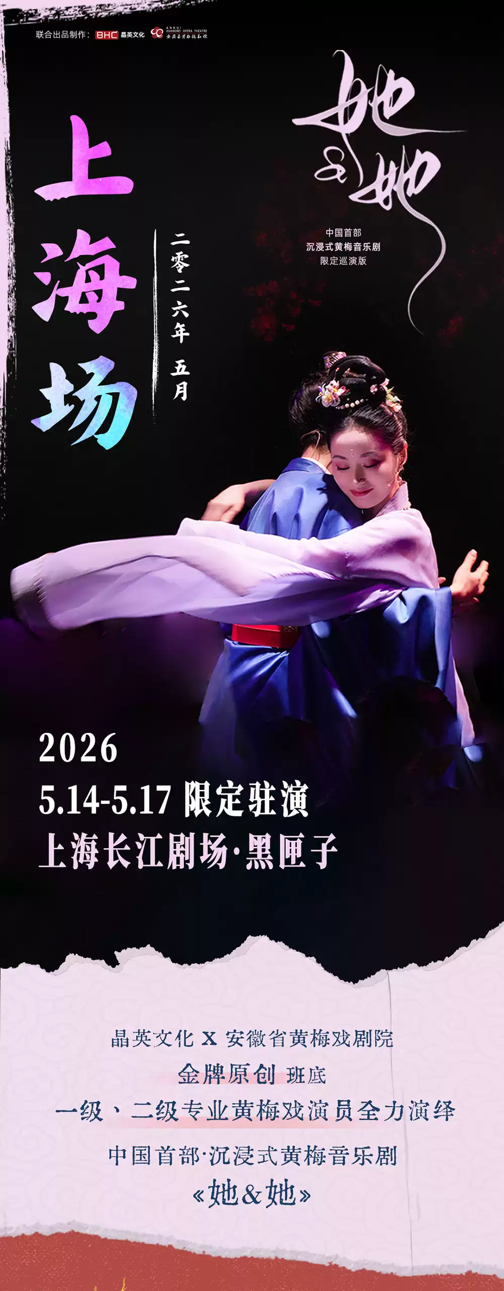 沪皖联手新国风音乐剧《她&她》,改编黄梅戏经典《女驸马》,将黄梅古韵与现代音乐剧完美融合,聚焦双女主的相知相伴,诠释女性彼此成就的治愈力量。360度沉浸式舞台打造零距离观演体验,实力派班底匠心演绎,让传统国风焕发全新活力!