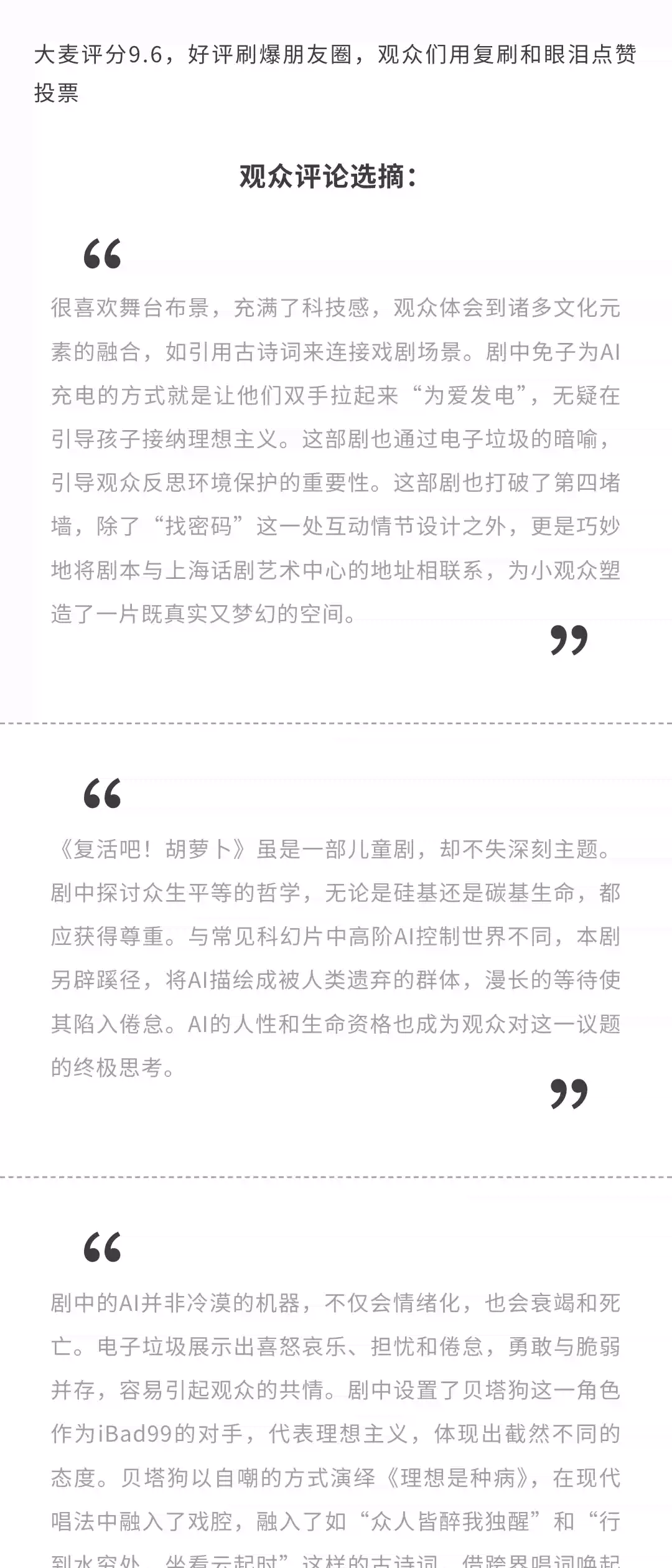 3.迟到观众需在场外等候,听从工作人员安排进场。请您合理安排出行时间,尽量提前抵达剧院,以免延误观演。