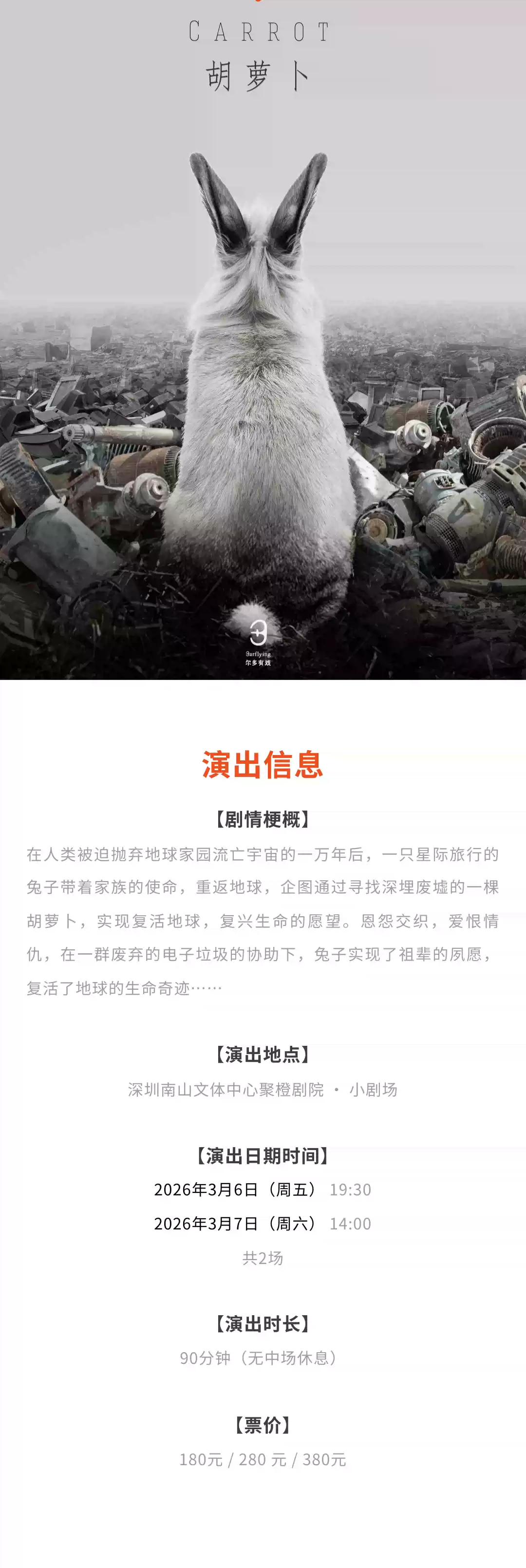 | 演出时间 | 2026.03.06-03.07 | 演出场馆 | 南山文体中心聚橙剧院小剧院 |