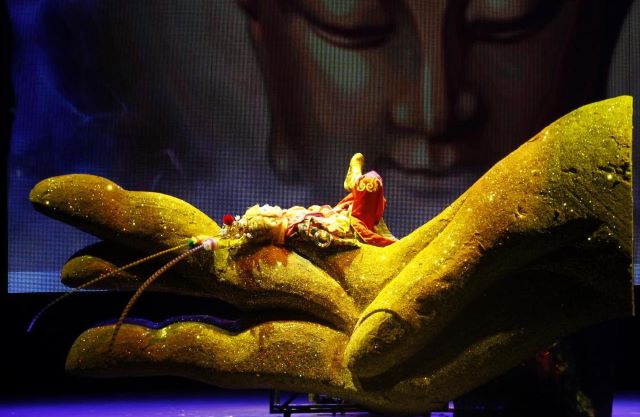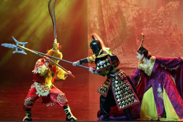 2、高难度的杂技表演:剧中经典的“大闹天宫”桥段,不再是简单的打斗,而是演变成了高难度的杂技表演,惊险刺激,极具视觉冲击力。