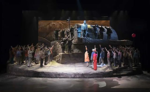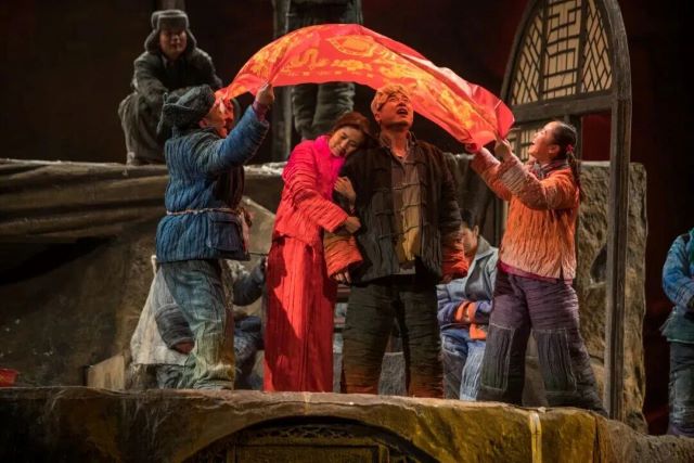 据悉,《平凡的世界》核心舞美装置为一座直径16米的360度旋转舞台,象征命运的转轮与时间的流动,演员在圆形舞台上演绎人生沉浮,仿佛黄土地本身在讲述它的故事。舞台上多次出现的大型“石碾”装置,既是农家日常工具,也象征“时代的碾压”,是一种隐喻性的设计亮点,与石碾融为一体的还有山坡、乡间小路和窑洞,连同极具地方质感的道具布设整体充分还原了陕北高原的风情地貌。同时演员使用地道陕北方言对白,同时剧中穿插陕西民歌信天游唱尽生命的炽热与苦痛,不仅迸发了剧中人物的质朴生命力,也使得黄土的温度、浓厚的陕西地域文化都触手可及,是真正意义上的“靠内容打动观众”的现实主义舞台剧。