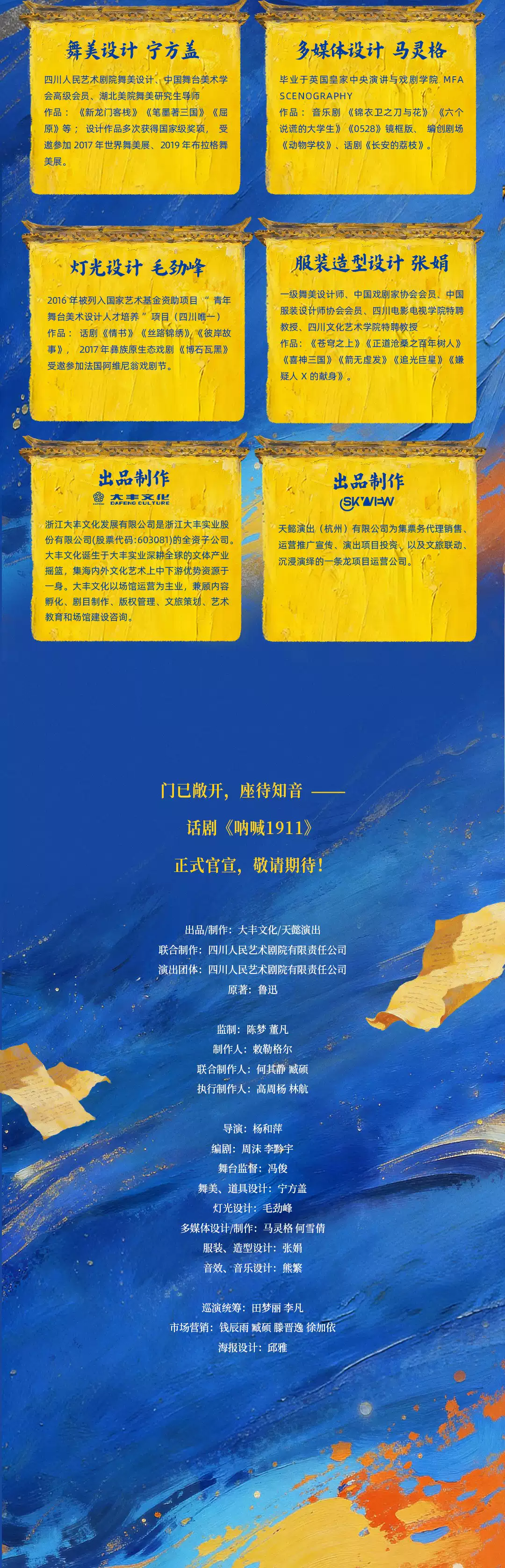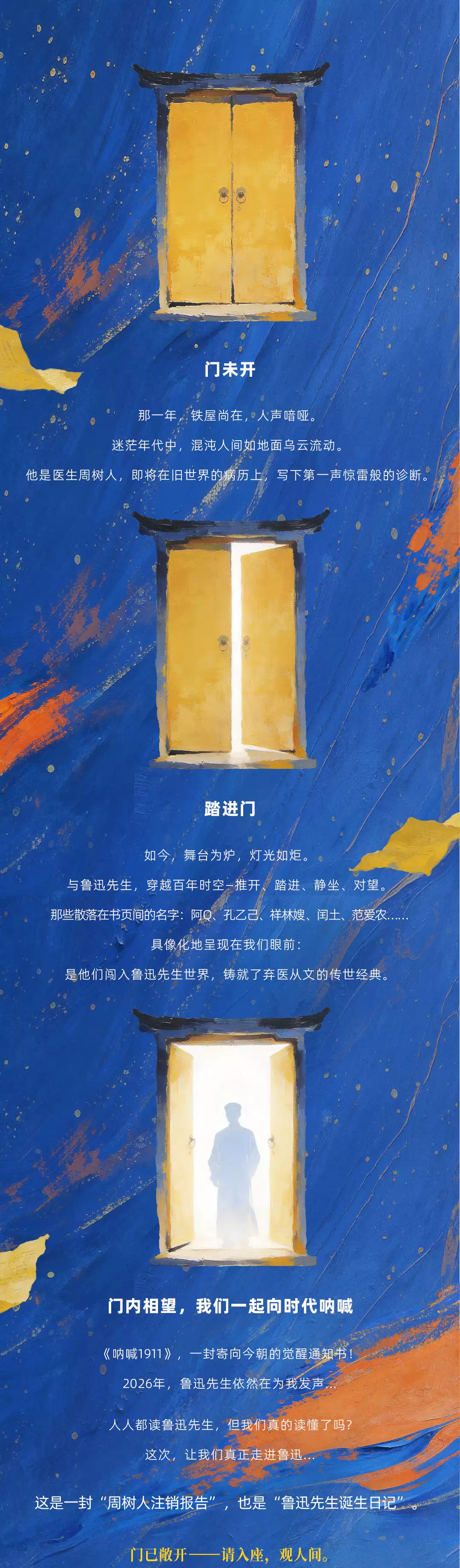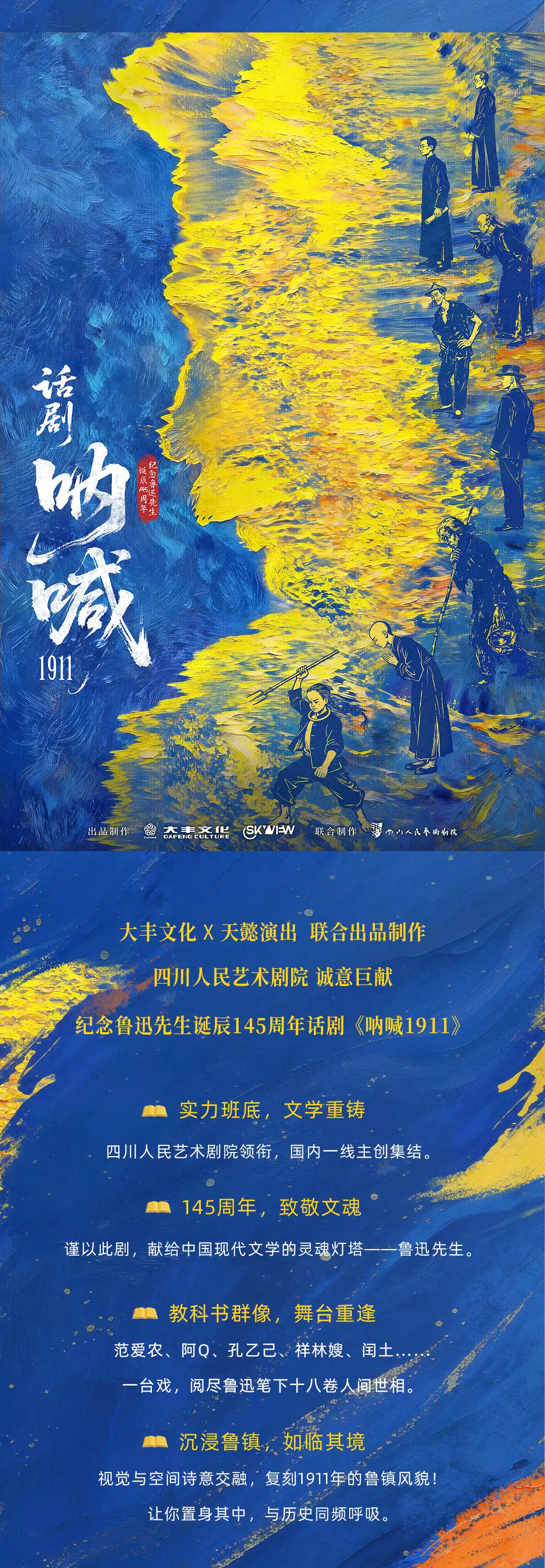 2026年3月20日至21日,成都高新中演大剧院-多功能剧场,鲁迅原著改编话剧《呐喊1911》谨以此剧,献给中国现代文学的灵魂灯塔——鲁迅先生!
