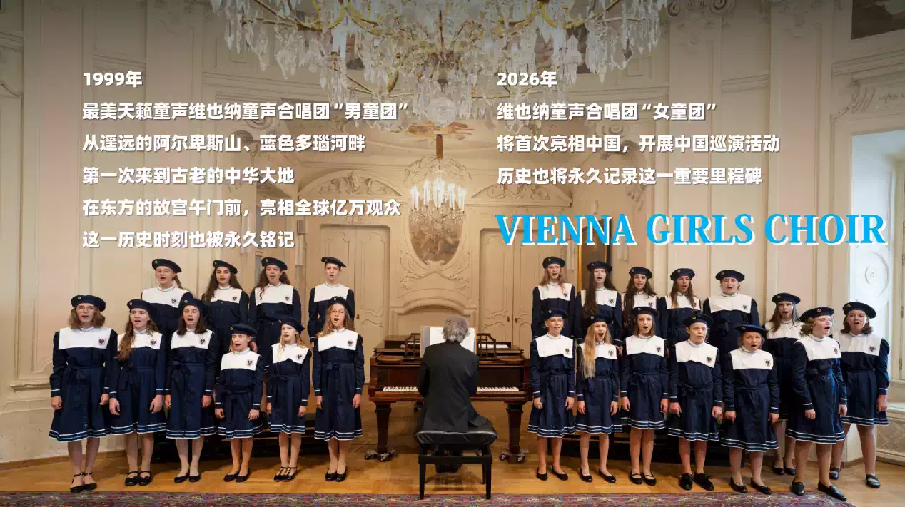 2026年,维也纳童声合唱团的独立女童合唱团——维也纳女童合唱团将首次踏上中国的舞台,开启她们期待已久的巡演之旅。来自“音乐之都”维也纳的这些女孩们,承载着五百多年的合唱传统,以纯净、灵动而富有表现力的声音,将跨越语言与地域,与中国观众相遇、对话与共鸣。本次巡演以“Hello”为主题,既是一声友好的问候,也象征着打开心扉、彼此倾听、共享美好的开始。