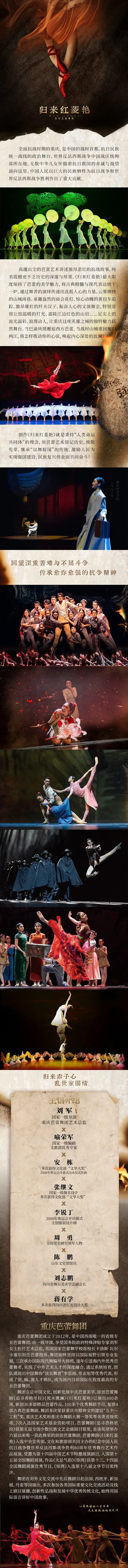 芭蕾舞剧《归来红菱艳》以舞蹈家戴爱莲为原型,将西方芭蕾与中国民族风情相融,讲述一代艺术赤子的家国情怀。剧中,海外求学的舞者心怀故土,在动荡岁月里毅然归国,以舞蹈为火种,用艺术传递力量,守护理想与初心。