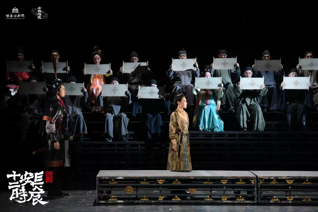 剧中打破了传统印象中繁复、暖色调的大唐形象,采用简约抽离的表演风格和强假定性的舞台设计,呈现出极具反差感的当代审美,模糊了时空的界限,塑造出古今交融的“长安”概念。