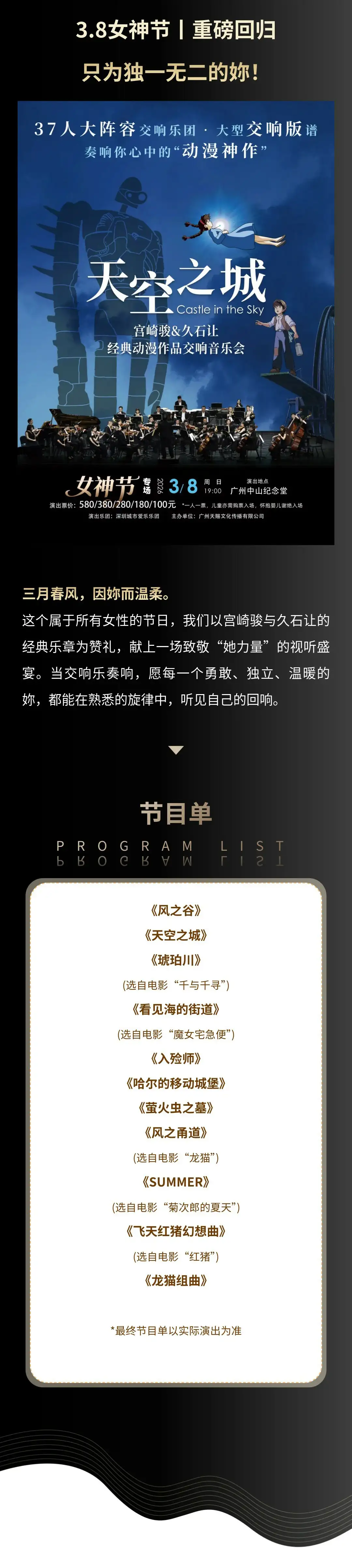 | 演出时间 | 2026-03-08 星期日 19:00 | 演出场馆 | 广州中山纪念堂 |