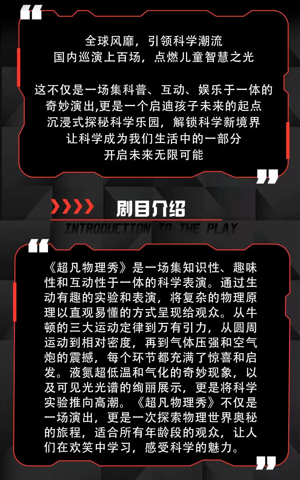 | 演出时长 | 以现场为准 | 儿童入场提示 | 儿童一律凭成人票入场 |
