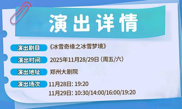 | 演出时间 | 2025-11-28/29 | 演出场馆 | 郑州大剧院歌舞剧场 |