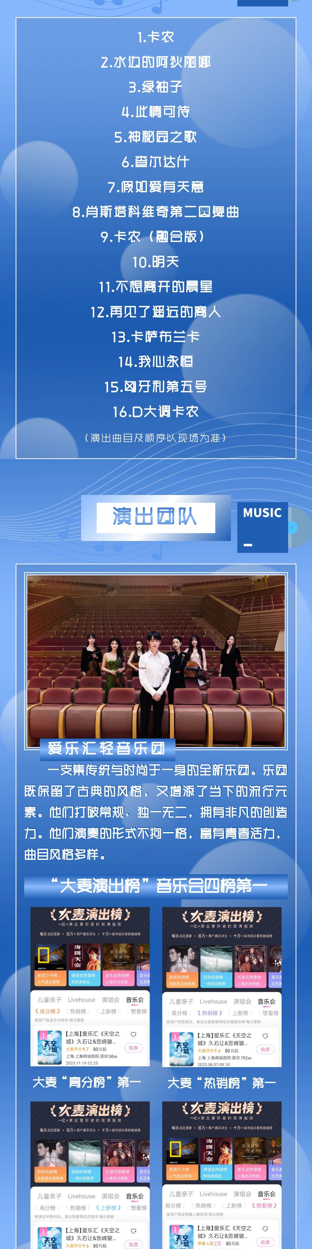 4.入场后,请严格按照票面指定区域和座位对号入座,请勿在演出期间换座,文明观演。