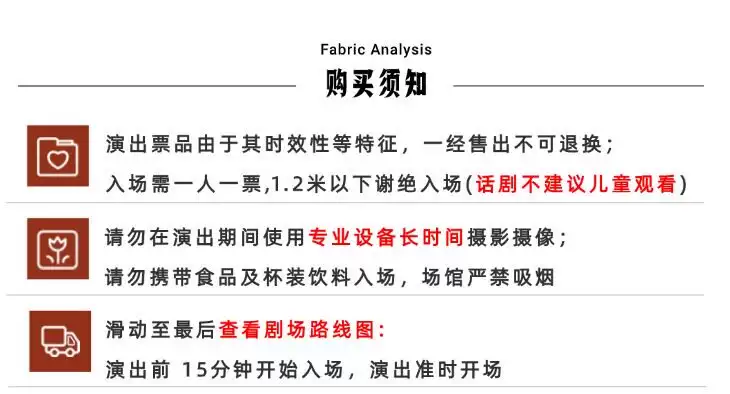 1.购买前请您提前规划好行程,做好相应准备,以免影响您的正常观演,感谢您的理解和配合。