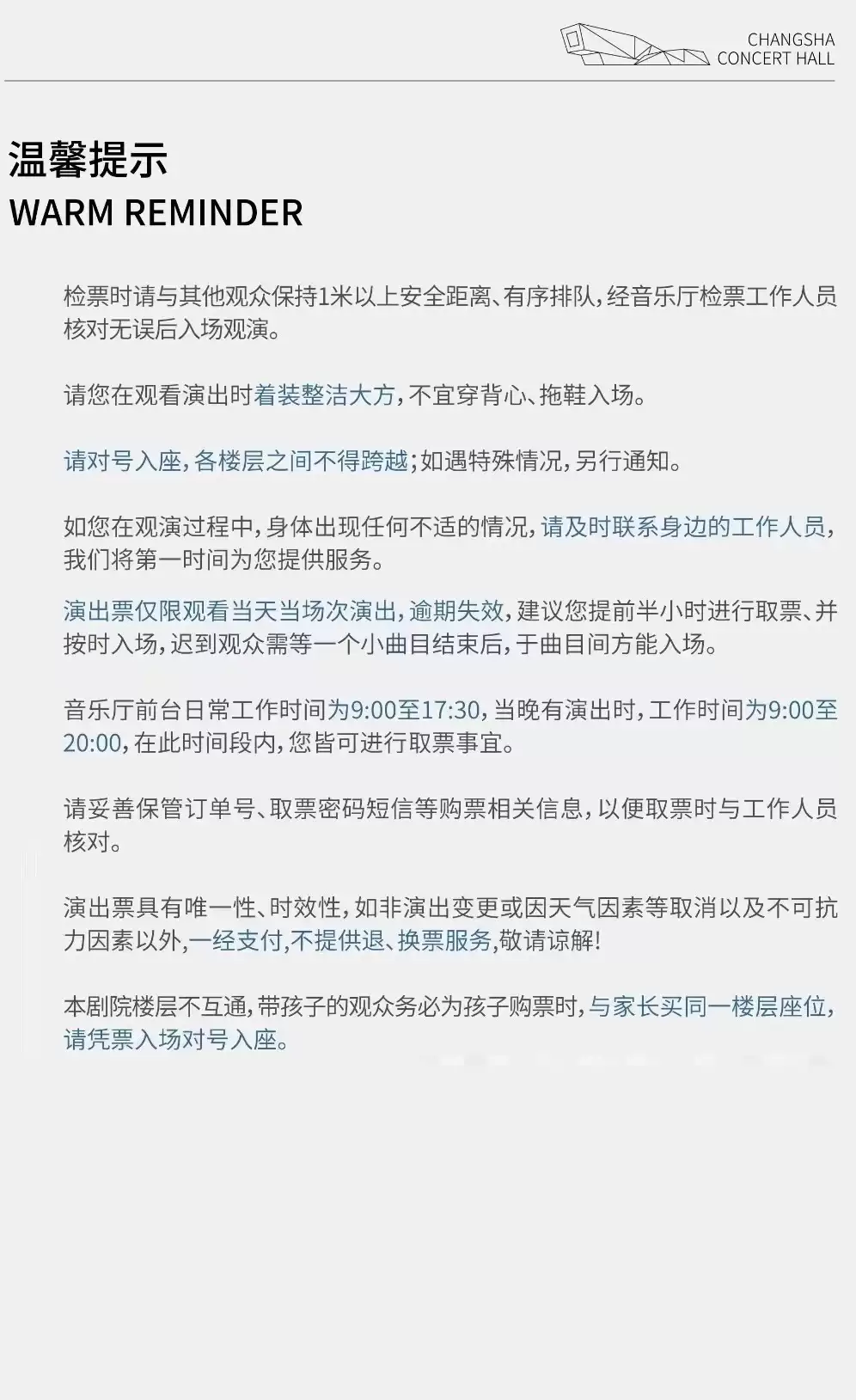 | 演出时长 | 以现场为准 | 儿童入场提示 | 儿童一律凭成人票入场 |